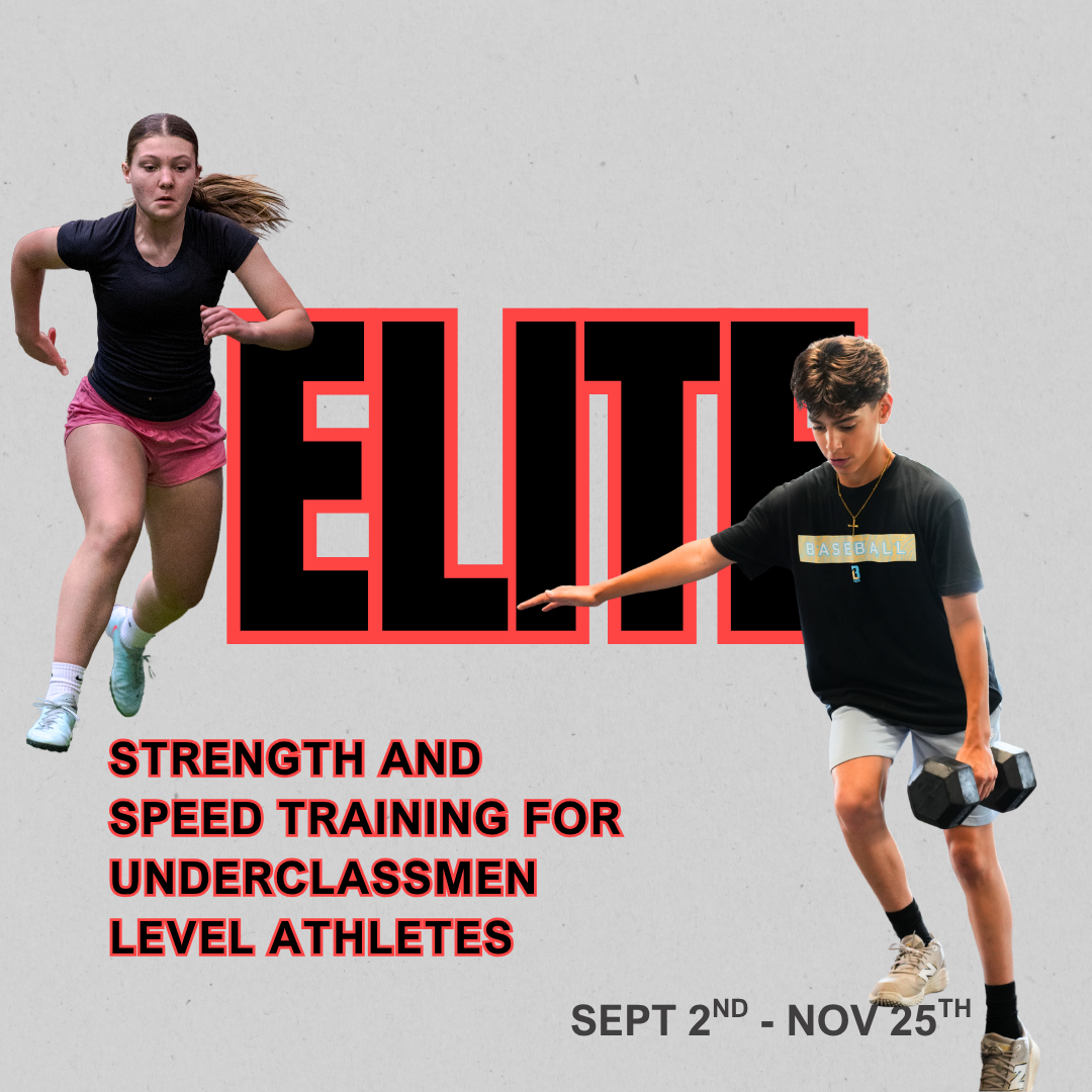 Our Elite Program is crafted for underclassmen and advanced 8th grade athletes ready to step up their training. This program focuses on building size, strength, speed, power, agility, and mobility to prepare athletes for higher-level competition.